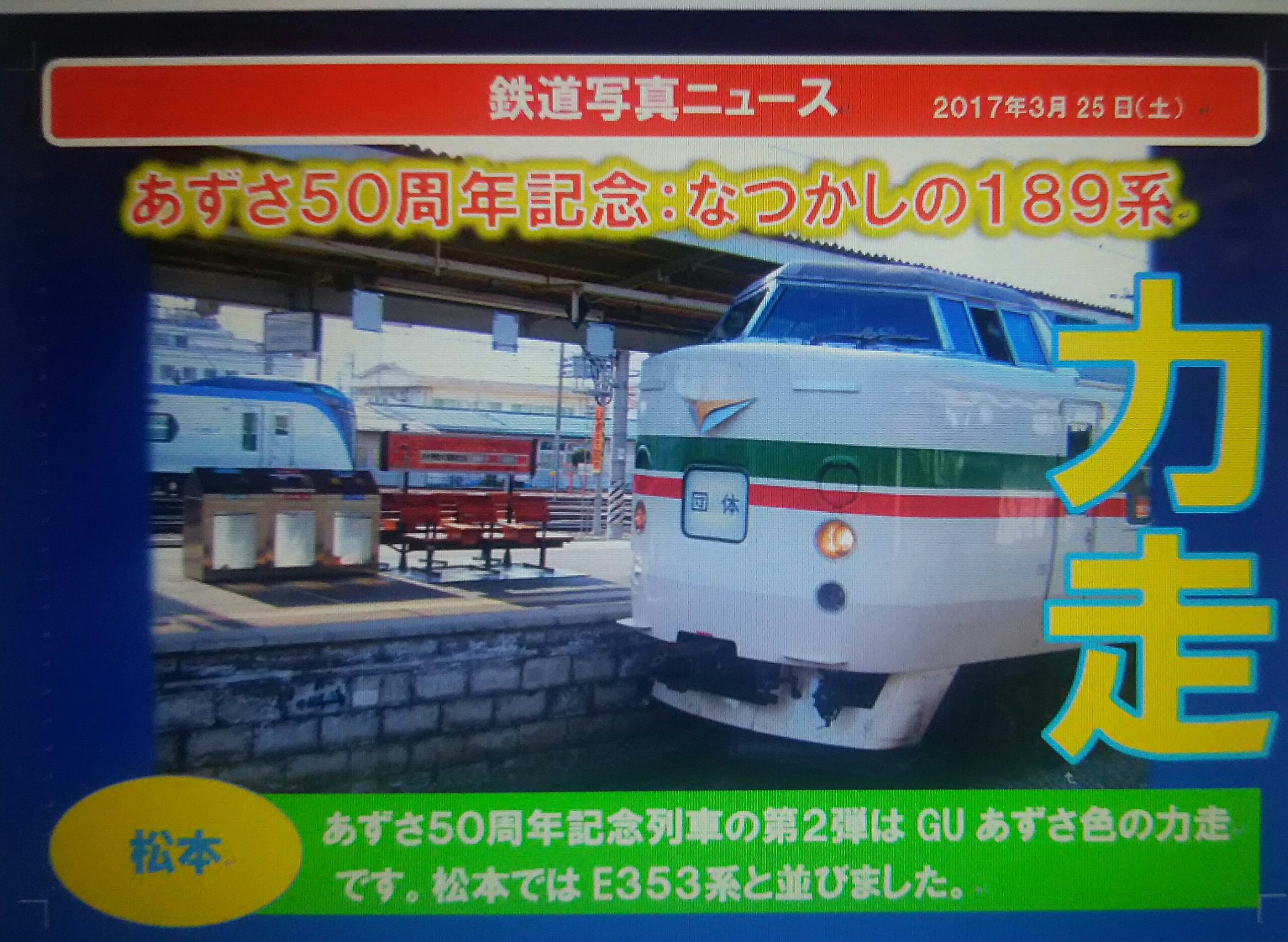 きょうはあずさ50周年記念列車第二弾:辰野経由の運行がありました。松本でE353系と撮影しました。